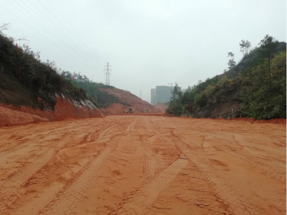 本工程所處區(qū)域地勢較為起伏,山丘林立,沿線主要為山地、魚塘、耕地、林地、場平地及局部民房等。相交道路除虎民路、環(huán)城路為現(xiàn)狀道路(金山大道在建)外,其他道路均為規(guī)劃道路(未建)。