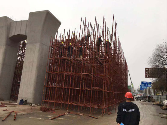 本項(xiàng)目全長(zhǎng)1204.559m,其中橋梁全長(zhǎng)684m,上跨武陵山大道節(jié)點(diǎn)274m,(4跨:55m+82m+82m+55m),為變高度全鋼箱梁;上跨天崇路節(jié)點(diǎn)橋梁110m(3跨:30m+50m+30m),為變高度預(yù)應(yīng)力混凝土連續(xù)梁;西側(cè)引橋長(zhǎng)300m(10跨:10×30m),為等高度預(yù)應(yīng)力混凝土連續(xù)梁。子午橫斷面為50m,橋梁橫斷面為17.5m,該道路為城市主干道,雙向8車道,設(shè)計(jì)車速50km/h,橋梁使用年限100年,車行道采用瀝青混凝土路面,設(shè)計(jì)合理使用年限15年。