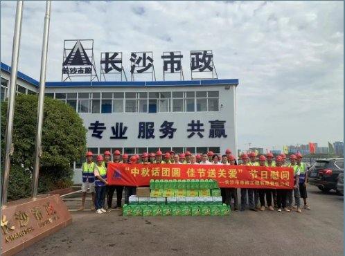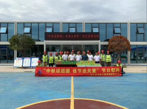 公司總經(jīng)理石含,副總經(jīng)理丁紅軍為靳江河西岸(含東山灣路)綜合整治工程項(xiàng)目、青竹湖統(tǒng)征儲(chǔ)備地塊配套路網(wǎng)工程項(xiàng)目 、秋江西路等六條路工程項(xiàng)目、長(zhǎng)沙機(jī)場(chǎng)中軸大道工程項(xiàng)目的一線員工發(fā)放了月餅、水果、礦泉水等慰問(wèn)品,帶去公司對(duì)他們的問(wèn)候和囑托,對(duì)大家的敬業(yè)奉獻(xiàn)精神表示高度贊揚(yáng),并叮囑大家一定要保重身體,注意安全,圓滿完成施工任務(wù)。